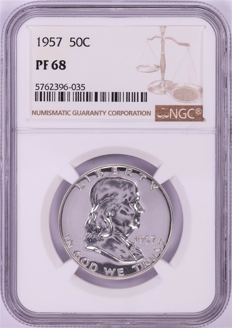 One 1957 Proof Franklin Half Dollar Coin NGC PF68. NGC Certified.