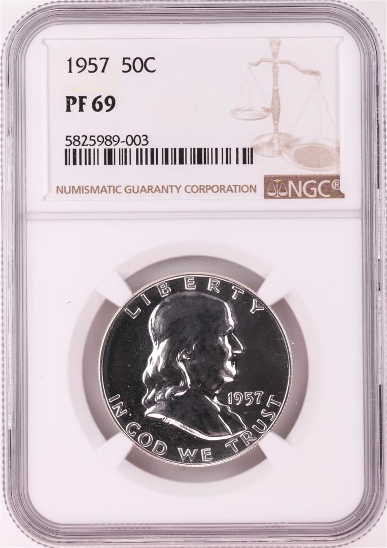 One 1957 Proof Franklin Half Dollar Coin NGC PF69. NGC Certified.
