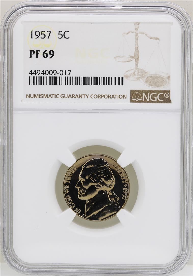 One 1957 Proof Jefferson Nickel Coin NGC PF69. NGC Certified.