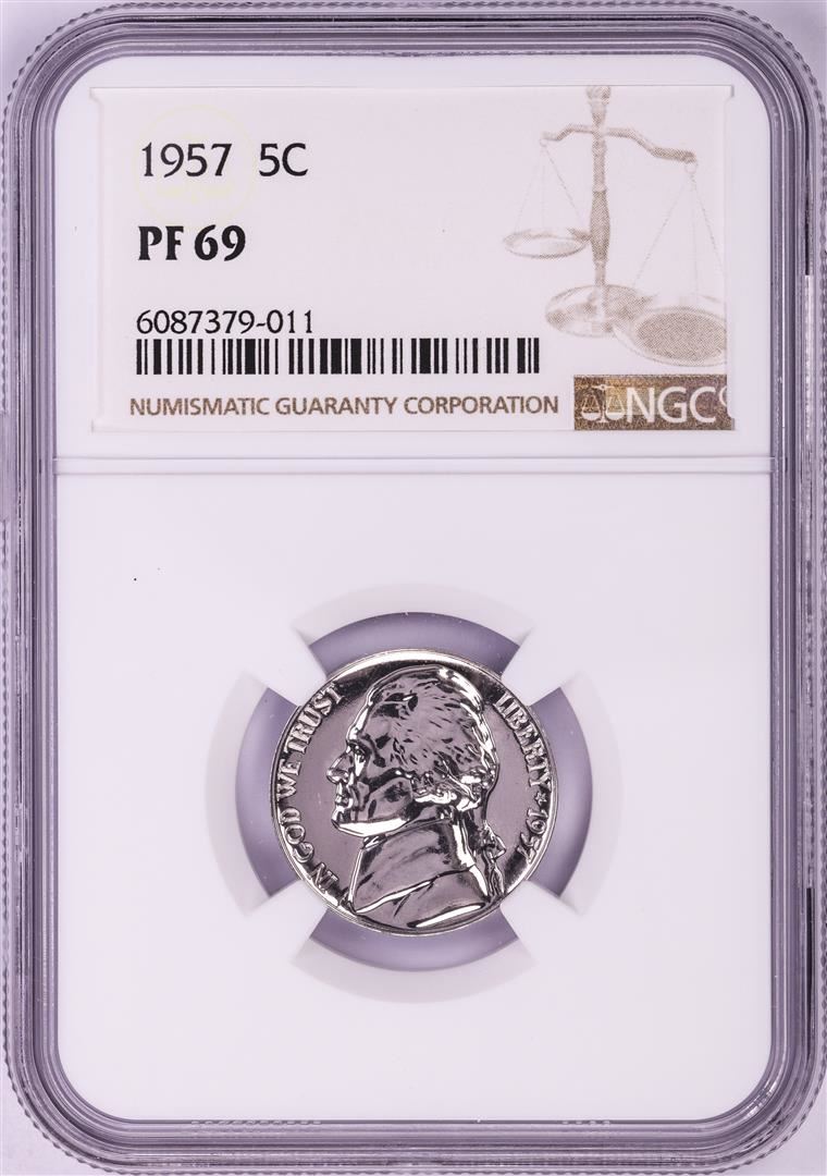 One 1957 Proof Jefferson Nickel Coin NGC PF69. NGC Certified.