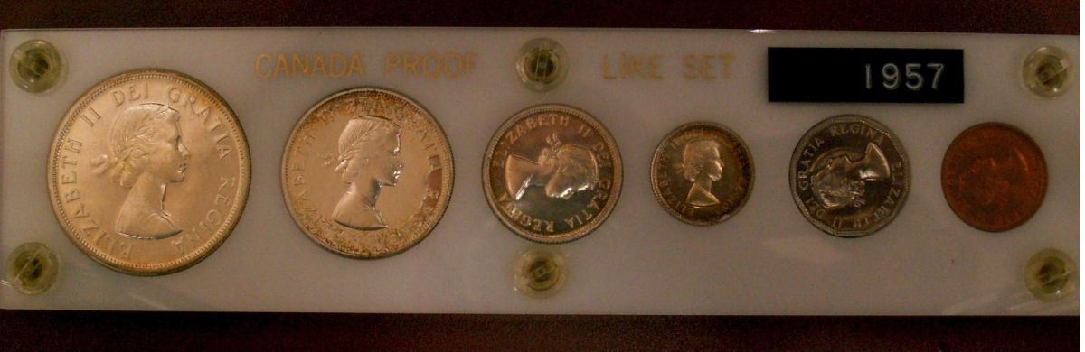 1957 Proof-Like Set. 6 coin set in hard plastic holder. All coins brilliant with very little toning.