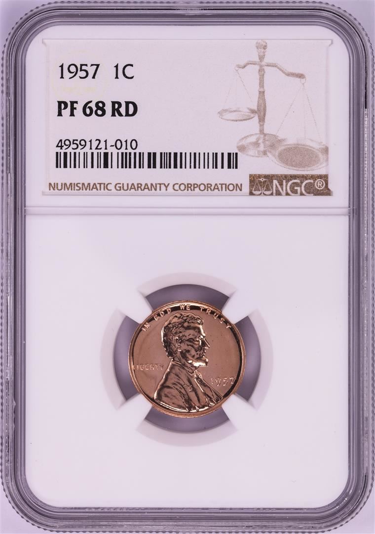One 1957 Proof Lincoln Wheat Cent Coin NGC PF68RD. NGC Certified.