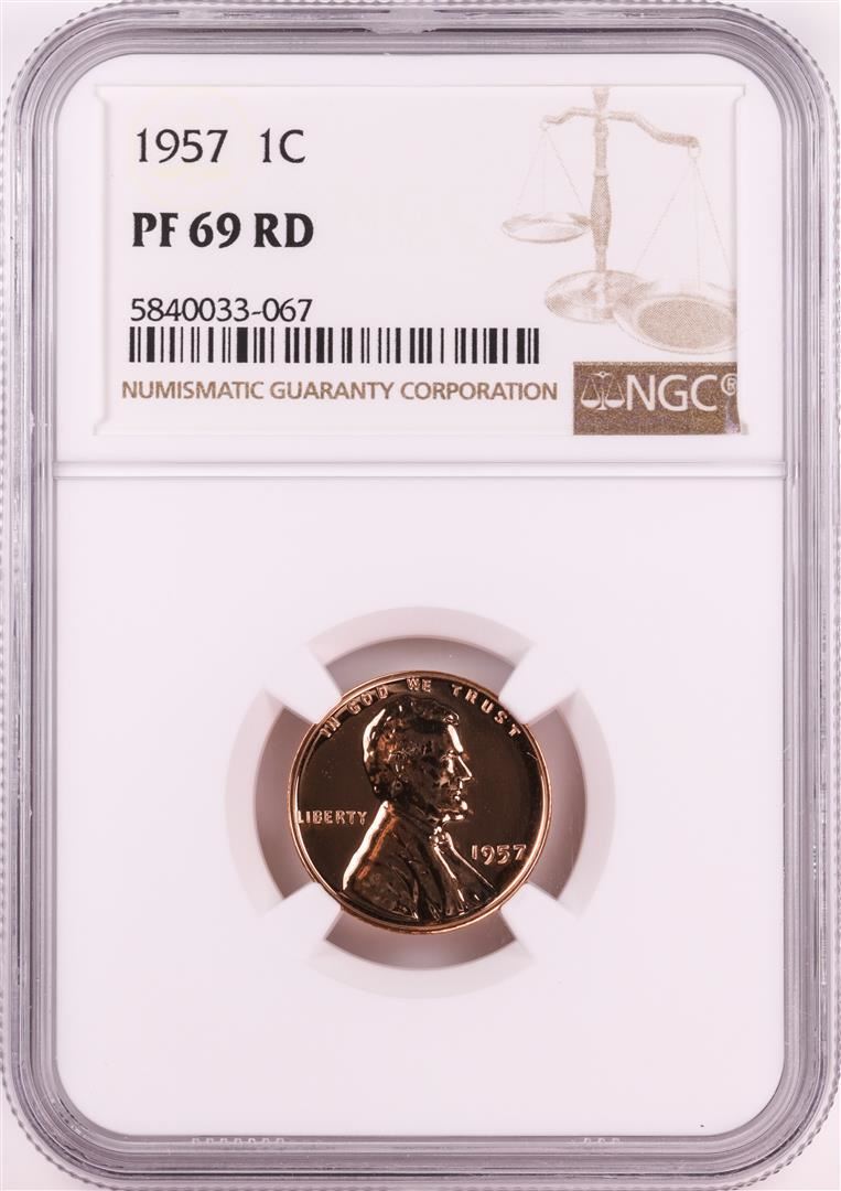 One 1957 Proof Lincoln Wheat Cent Coin NGC PF69RD. NGC Certified.