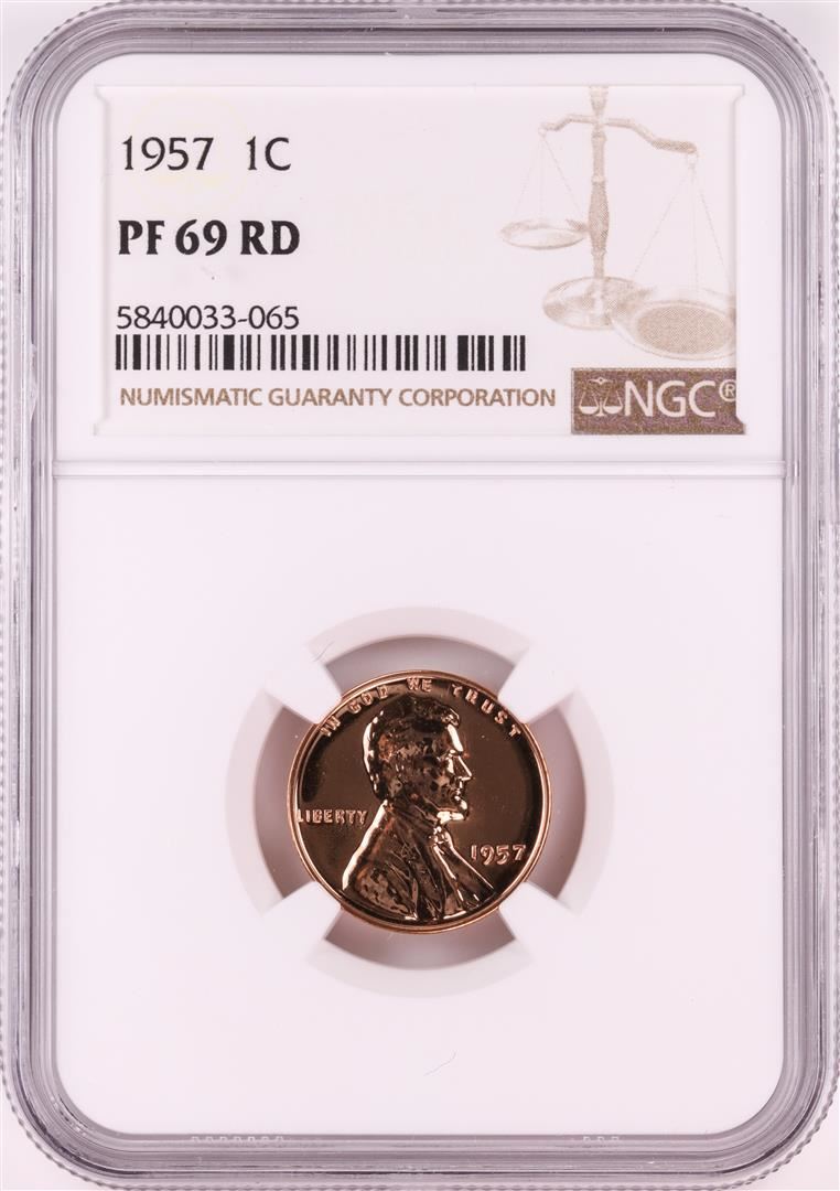 One 1957 Proof Lincoln Wheat Cent Coin NGC PF69RD. NGC Certified.
