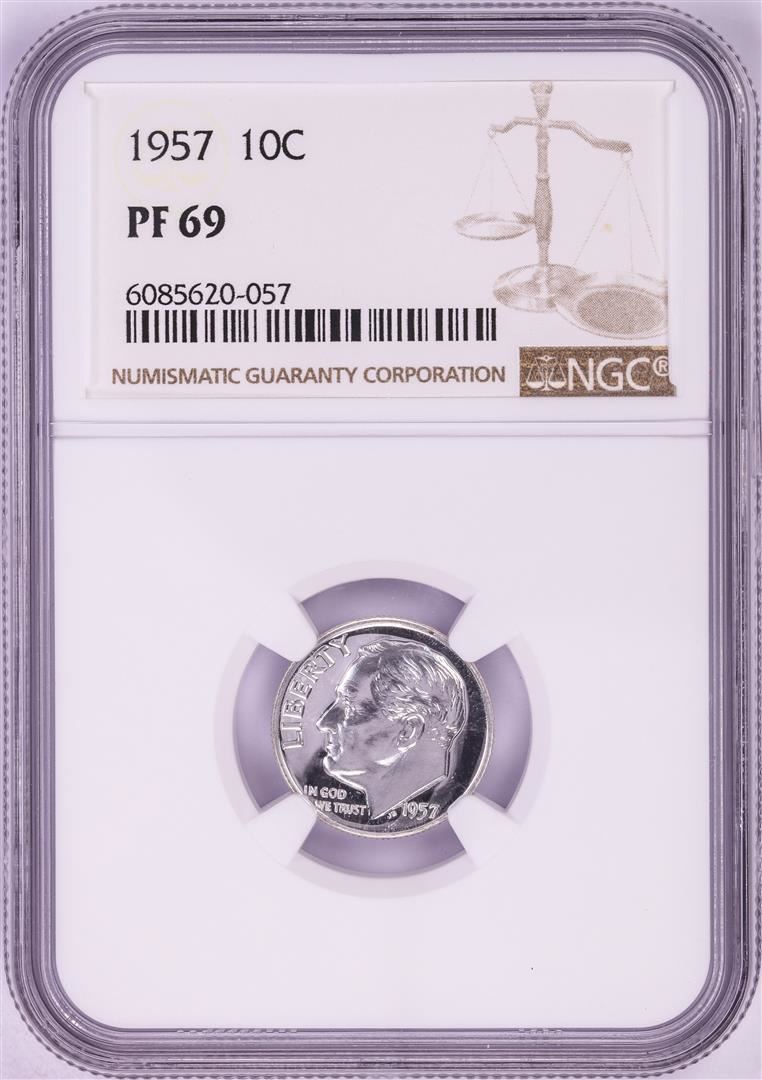 One 1957 Proof Roosevelt Dime Coin NGC PF69. NGC Certified.