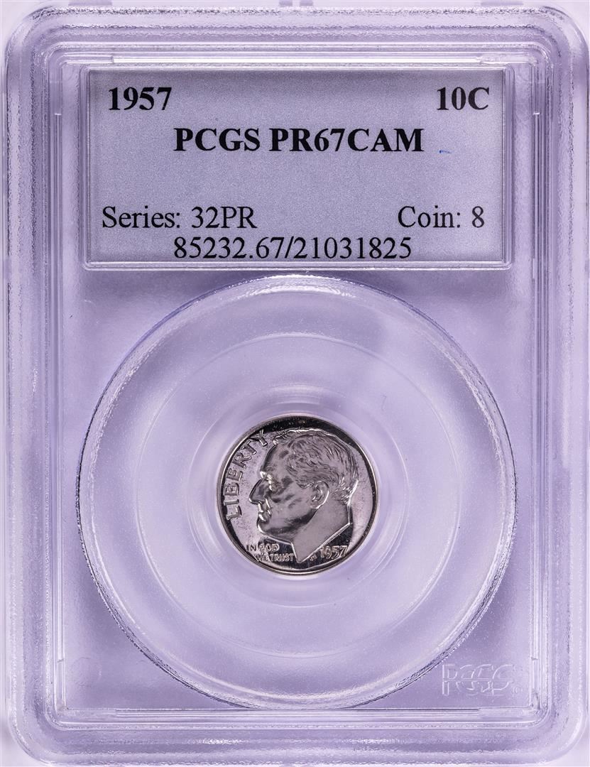One 1957 Proof Roosevelt Dime Coin PCGS PR67CAM. PCGS Graded.