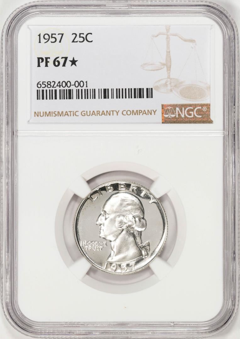 One 1957 Proof Washington Quarter Coin NGC PF67* Star. NGC Certified.