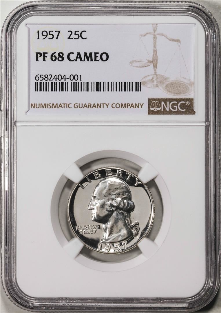 One 1957 Proof Washington Quarter Coin NGC PF68 Cameo. NGC Certified.