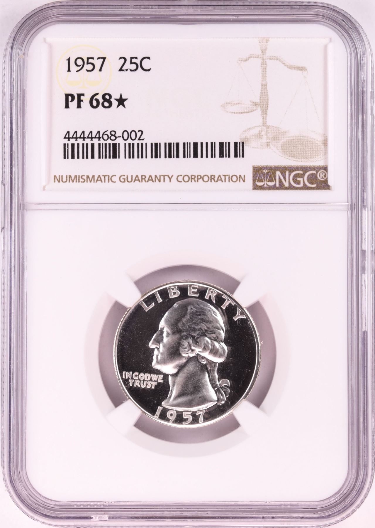 One 1957 Proof Washington Quarter Coin NGC PF68* Star.