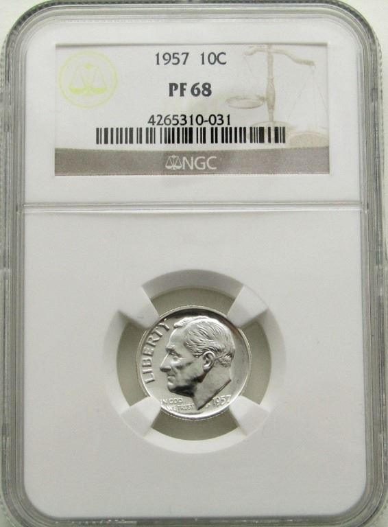 1957 ROOSEVELT DIME PF 68