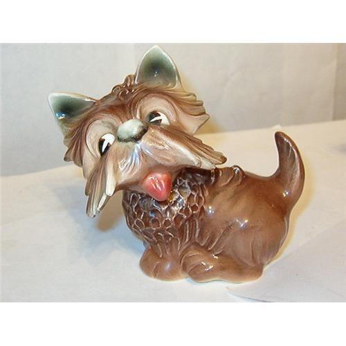 THIS IS A DOG SCOTTISH TERRIER FIGURINE MADE IN JAPAN by VCAGCO AROUND 1957. ALL THE DOGS THAT I PUT ON HERE ARE FROM MY OWN DOG COLLECTION. THIS DOG WAS ADDED TO MY COLLECTION ON FEBRUARY 14, 1957. I HAVE OVER 300 DOGS THAT I RECEIVED FOR MY COLLECTION FROM 1954 TO 1964 THAT WILL BE PUT UP FOR SALE OR AUCTION. I HAVE THE EXACT DATE THAT I RECEIVED EACH DOG. SOME OF THE DOGS ARE OLDER THAN THE DATE THAT I RECEIVED THEM. I NOW HAVE OVER 1200 DOGS ( OLD AND NEW ) IN MY COLLECTION AND THEY ARE ALL UP FOR SALE OR AUCTION. I GUARANTY THAT MY DOGS ARE THE REAL (DOG) DEAL. MY DOGS ARE THE ORIGINAL OLD DOGS AND NOT THE FAKES AND REPLICAS. This Dog is in Excellent condition for its age. There are no cracks or repairs on this Dog. There apears to be a very small nick or flaw just to the right of his tounge on the tip of his whisker. I do not see age crazing on this Dog. You can see most of this in my pictures. I HAVE OVER 800 POSITIVE FEEDBACKS FOR MY EBAY STORE. Thanks for Looking !!!