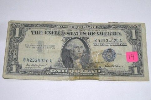 1957 SERIES $1 SILVER CERTIFICATE BILL SERIAL #B42534020A *NICE EARLY U.S. DOLLAR*!! BILL CAME OUT OF SAFE!! ***Coin, Currency & All Items Listed in this auction - Grades, Conditions and Values are not Safe Deposit Coins LLC Responsibilty. Grades, Condition and Values are determined by Consigner(s) & Buyers ONLY***