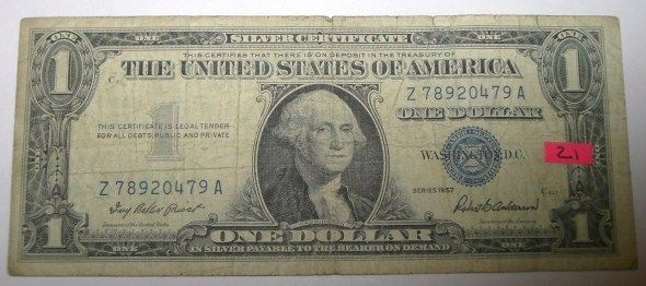 1957 SERIES $1 SILVER CERTIFICATE BILL SERIAL #Z78920479A *NICE EARLY U.S. BILL*!! ***Coin, Currency & All Items Listed in this auction - Grades, Conditions and Values are not Safe Deposit Coins LLC Responsibilty. Grades, Condition and Values are determined by Consigner(s) & Buyers ONLY***