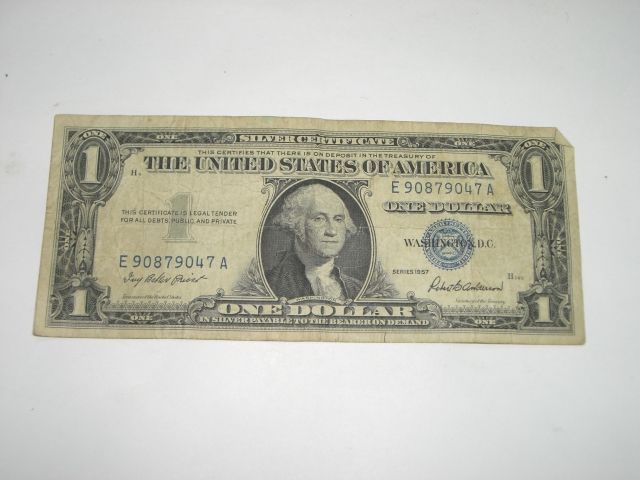 1957 SERIES $1 SILVER CERTIFICATE NOTE *NICE BILL* Serial# E90879047A!! ***Coin, Currency & All Items Listed in this auction - Grades, Conditions and Values are not Safe Deposit Coins LLC Responsibilty. Grades, Condition and Values are determined by Consigner(s) & Buyers ONLY***