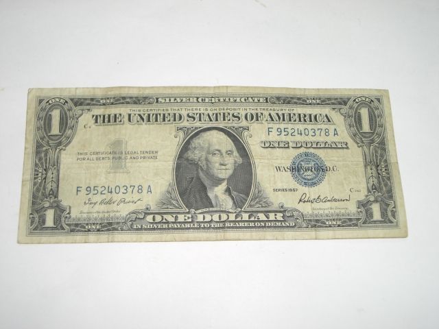 1957 SERIES $1 SILVER CERTIFICATE NOTE *NICE BILL* Serial# F95240378A!! ***Coin, Currency & All Items Listed in this auction - Grades, Conditions and Values are not Safe Deposit Coins LLC Responsibilty. Grades, Condition and Values are determined by Consigner(s) & Buyers ONLY***