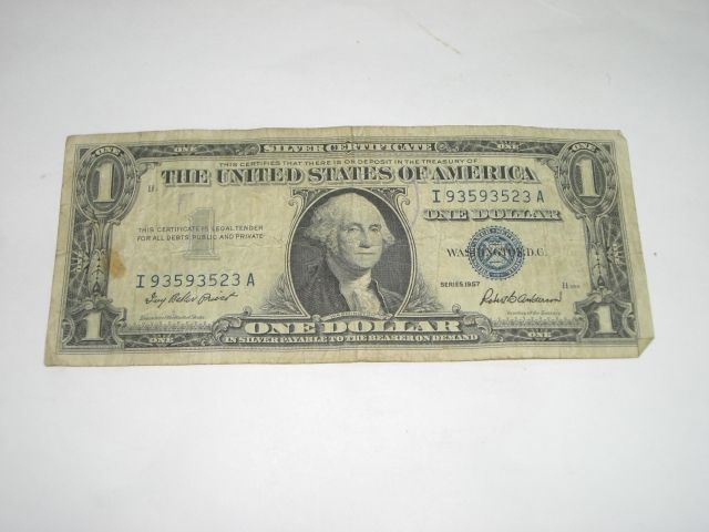 1957 SERIES $1 SILVER CERTIFICATE NOTE *NICE BILL* Serial# I93593523A!! ***Coin, Currency & All Items Listed in this auction - Grades, Conditions and Values are not Safe Deposit Coins LLC Responsibilty. Grades, Condition and Values are determined by Consigner(s) & Buyers ONLY***