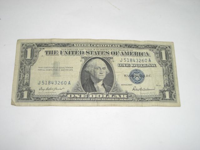 1957 SERIES $1 SILVER CERTIFICATE NOTE *NICE BILL* Serial# J51843260A!! ***Coin, Currency & All Items Listed in this auction - Grades, Conditions and Values are not Safe Deposit Coins LLC Responsibilty. Grades, Condition and Values are determined by Consigner(s) & Buyers ONLY***