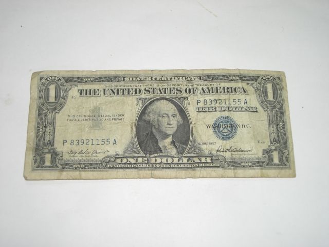 1957 SERIES $1 SILVER CERTIFICATE NOTE *NICE BILL* Serial# P83921155A!! ***Coin, Currency & All Items Listed in this auction - Grades, Conditions and Values are not Safe Deposit Coins LLC Responsibilty. Grades, Condition and Values are determined by Consigner(s) & Buyers ONLY***