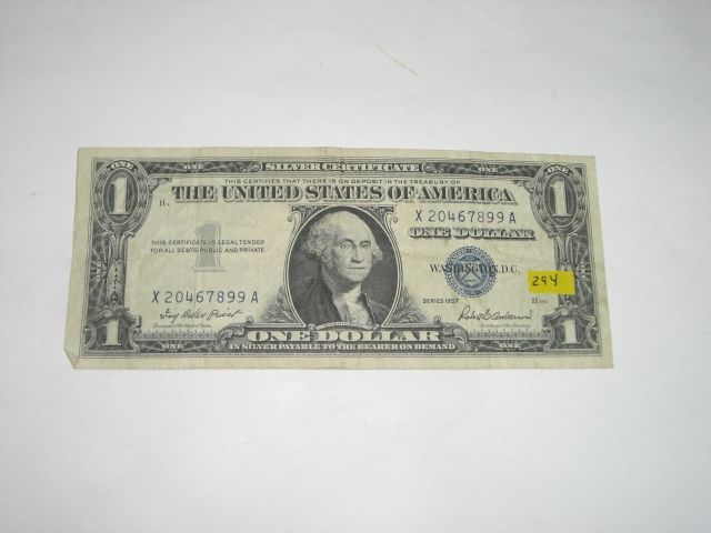 1957 SERIES $1 SILVER CERTIFICATE NOTE *NICE BILL* Serial# X20467899A!! ***Coin, Currency & All Items Listed in this auction - Grades, Conditions and Values are not Safe Deposit Coins LLC Responsibilty. Grades, Condition and Values are determined by Consigner(s) & Buyers ONLY***
