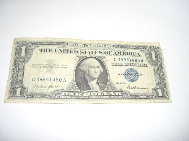 1957 SERIES $1 SILVER CERTIFICATE *SERIAL #G39851480A*!! ***Coin, Currency & All Items Listed in this auction - Grades, Conditions and Values are not Safe Deposit Coins LLC Responsibilty. Grades, Condition and Values are determined by Consigner(s) & Buyers ONLY***