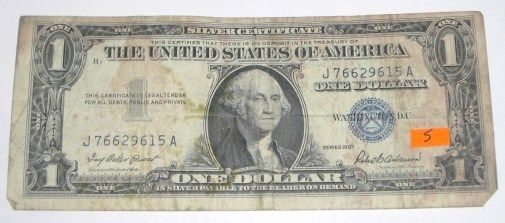 1957 SERIES $1 SILVER CERTIFICATE SERIAL #J76629615A *NICE EARLY U.S. BILL!! ***Coin, Currency & All Items Listed in this auction - Grades, Conditions and Values are not Safe Deposit Coins LLC Responsibilty. Grades, Condition and Values are determined by Consigner(s) & Buyers ONLY