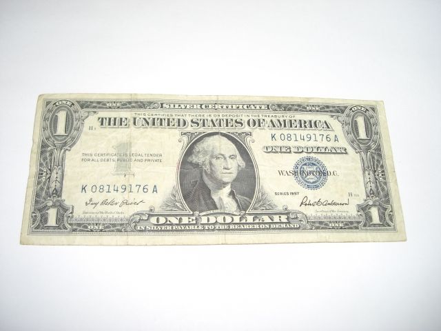 1957 SERIES $1 SILVER CERTIFICATE *SERIAL #K08149176A*!! ***Coin, Currency & All Items Listed in this auction - Grades, Conditions and Values are not Safe Deposit Coins LLC Responsibilty. Grades, Condition and Values are determined by Consigner(s) & Buyers ONLY***