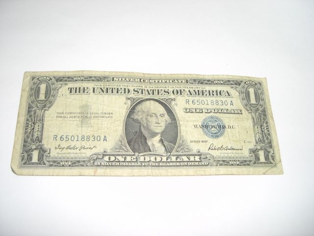 1957 SERIES $1 SILVER CERTIFICATE *SERIAL #R65018830A*!! ***Coin, Currency & All Items Listed in this auction - Grades, Conditions and Values are not Safe Deposit Coins LLC Responsibilty. Grades, Condition and Values are determined by Consigner(s) & Buyers ONLY***