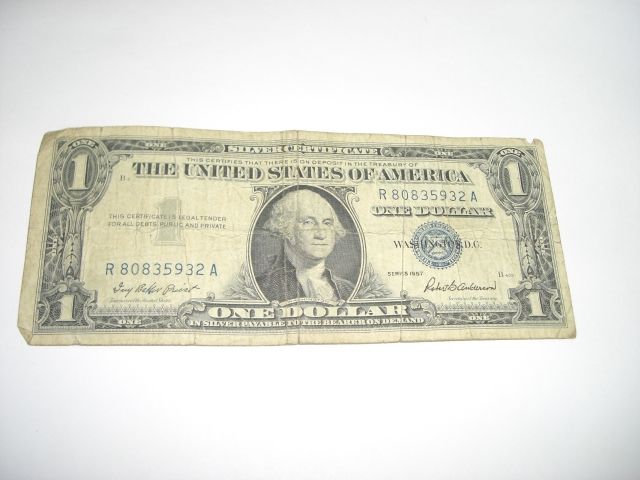 1957 SERIES $1 SILVER CERTIFICATE *SERIAL #R80835932A*!! ***Coin, Currency & All Items Listed in this auction - Grades, Conditions and Values are not Safe Deposit Coins LLC Responsibilty. Grades, Condition and Values are determined by Consigner(s) & Buyers ONLY***