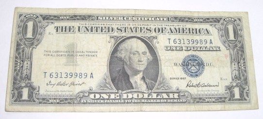 1957 SERIES $1 SILVER CERTIFICATE SERIAL # T63139989A *PLEASE LOOK AT PICTURE TO DETERMINE GRADE - NICE BILL*!! ***Coin, Currency & All Items Listed in this auction - Grades, Conditions and Values are not Safe Deposit Coins LLC Responsibilty. Grades, Condition and Values are determined by Consigner(s) & Buyers ONLY