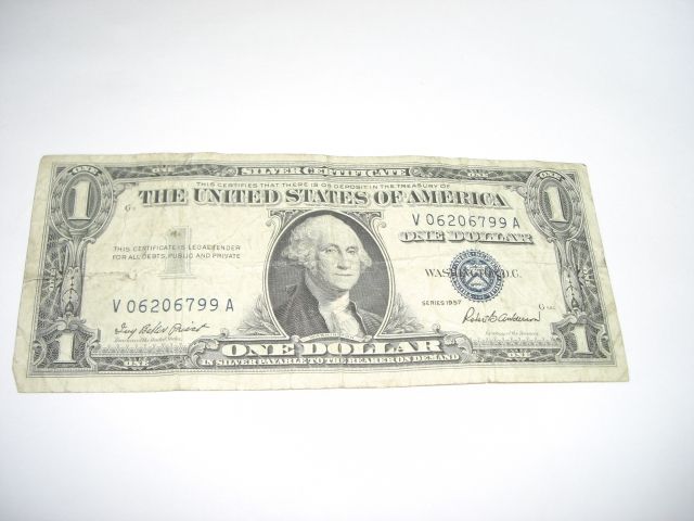 1957 SERIES $1 SILVER CERTIFICATE *SERIAL #V06206799A*!! ***Coin, Currency & All Items Listed in this auction - Grades, Conditions and Values are not Safe Deposit Coins LLC Responsibilty. Grades, Condition and Values are determined by Consigner(s) & Buyers ONLY***