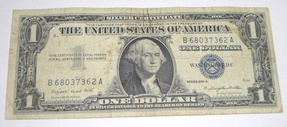 1957 SERIES A $1 SILVER CERTIFICATE BILL SERIAL # B68037362A *NICE BILL PLEASE LOOK AT PICTURE TO DETERMINE GRADE*!! ***Coin, Currency & All Items Listed in this auction - Grades, Conditions and Values are not Safe Deposit Coins LLC Responsibilty. Grades, Condition and Values are determined by Consigner(s) & Buyers ONLY