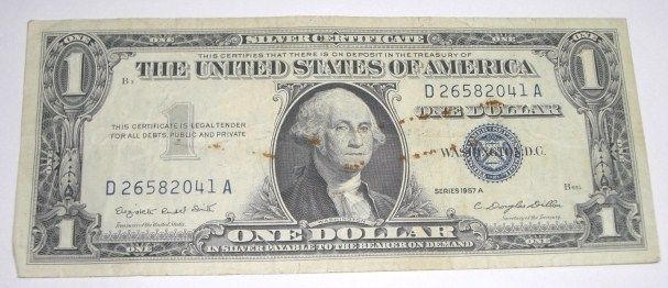 1957 SERIES A $1 SILVER CERTIFICATE BILL SERIAL # D26582041A *NICE BILL EXTRA FINE GRADE*!! ***Coin, Currency & All Items Listed in this auction - Grades, Conditions and Values are not Safe Deposit Coins LLC Responsibilty. Grades, Condition and Values are determined by Consigner(s) & Buyers ONLY