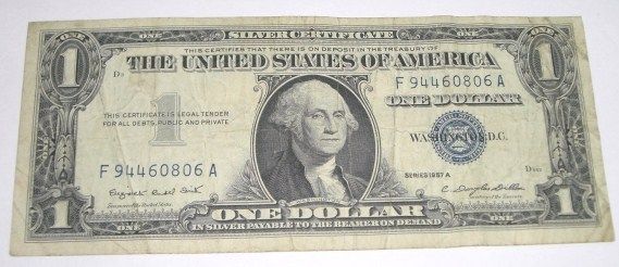 1957 SERIES A $1 SILVER CERTIFICATE BILL SERIAL # F94460806A *NICE BILL PLEASE LOOK AT PICTURE TO DETERMINE GRADE*!! ***Coin, Currency & All Items Listed in this auction - Grades, Conditions and Values are not Safe Deposit Coins LLC Responsibilty. Grades, Condition and Values are determined by Consigner(s) & Buyers ONLY