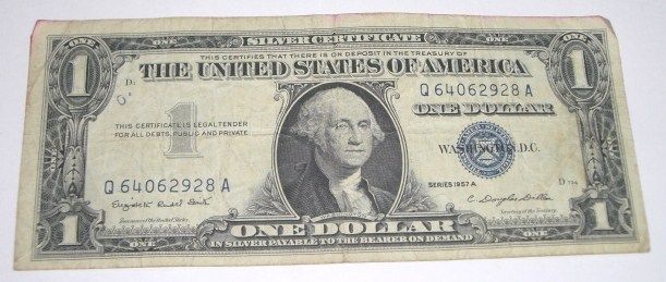 1957 SERIES A $1 SILVER CERTIFICATE BILL SERIAL # G64062928A *NICE BILL PLEASE LOOK AT PICTURE TO DETERMINE GRADE*!! ***Coin, Currency & All Items Listed in this auction - Grades, Conditions and Values are not Safe Deposit Coins LLC Responsibilty. Grades, Condition and Values are determined by Consigner(s) & Buyers ONLY