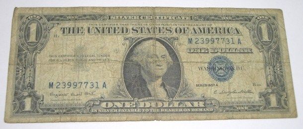 1957 SERIES A $1 SILVER CERTIFICATE BILL SERIAL # M23997731A *NICE BILL PLEASE LOOK AT PICTURE TO DETERMINE GRADE*!! ***Coin, Currency & All Items Listed in this auction - Grades, Conditions and Values are not Safe Deposit Coins LLC Responsibilty. Grades, Condition and Values are determined by Consigner(s) & Buyers ONLY