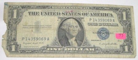 1957 SERIES A $1 SILVER CERTIFICATE BILL SERIAL # P14359069A *RARE EARLY U.S. BILL*!! BILL CAME OUT OF SAFE!! ***Coin, Currency & All Items Listed in this auction - Grades, Conditions and Values are not Safe Deposit Coins LLC Responsibilty. Grades, Condition and Values are determined by Consigner(s) & Buyers ONLY