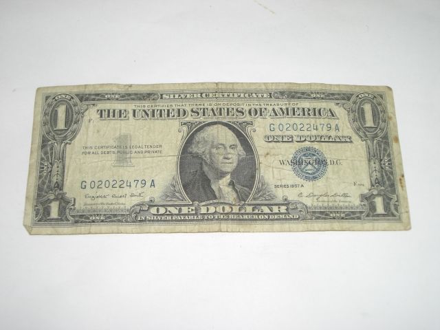 1957 SERIES A $1 SILVER CERTIFICATE NOTE *NICE BILL* Serial# G02022479A!! ***Coin, Currency & All Items Listed in this auction - Grades, Conditions and Values are not Safe Deposit Coins LLC Responsibilty. Grades, Condition and Values are determined by Consigner(s) & Buyers ONLY***