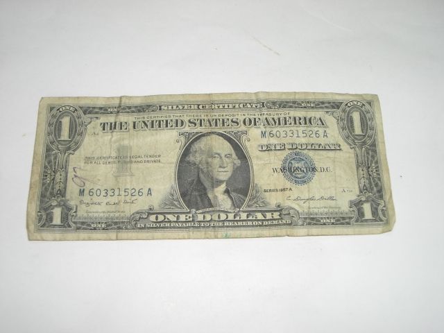 1957 SERIES A $1 SILVER CERTIFICATE NOTE *NICE BILL* Serial# M60331526A!! ***Coin, Currency & All Items Listed in this auction - Grades, Conditions and Values are not Safe Deposit Coins LLC Responsibilty. Grades, Condition and Values are determined by Consigner(s) & Buyers ONLY***