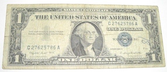 1957 SERIES A $1 SILVER CERTIFICATE BILL SERIAL #C27625786A *PLEASE LOOK AT PICTURE TO DETERMINE GRADE*!!! ***Coin, Currency & All Items Listed in this auction - Grades, Conditions and Values are not Safe Deposit Coins LLC Responsibilty. Grades, Condition and Values are determined by Consigner(s) & Buyers ONLY***