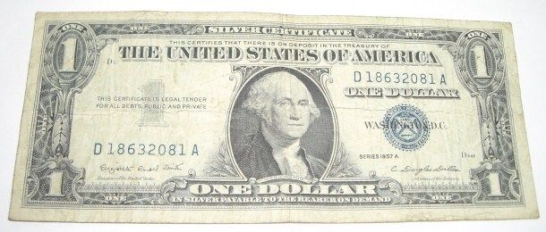 1957 SERIES A $1 SILVER CERTIFICATE BILL SERIAL #D18632081A *PLEASE LOOK AT PICTURE TO DETERMINE GRADE*!!! ***Coin, Currency & All Items Listed in this auction - Grades, Conditions and Values are not Safe Deposit Coins LLC Responsibilty. Grades, Condition and Values are determined by Consigner(s) & Buyers ONLY***