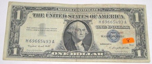 1957 SERIES A $1 SILVER CERTIFICATE SERIAL #H69665493A *NICE EARLY U.S. BILL!! ***Coin, Currency & All Items Listed in this auction - Grades, Conditions and Values are not Safe Deposit Coins LLC Responsibilty. Grades, Condition and Values are determined by Consigner(s) & Buyers ONLY