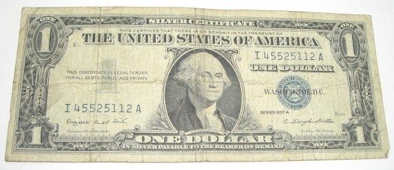 1957 SERIES A $1 SILVER CERTIFICATE BILL SERIAL #I45525112A *PLEASE LOOK AT PICTURE TO DETERMINE GRADE*!!! ***Coin, Currency & All Items Listed in this auction - Grades, Conditions and Values are not Safe Deposit Coins LLC Responsibilty. Grades, Condition and Values are determined by Consigner(s) & Buyers ONLY***