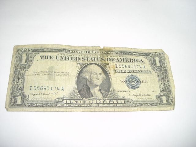 1957 SERIES A $1 SILVER CERTIFICATE *SERIAL #I55691174A*!! ***Coin, Currency & All Items Listed in this auction - Grades, Conditions and Values are not Safe Deposit Coins LLC Responsibilty. Grades, Condition and Values are determined by Consigner(s) & Buyers ONLY***