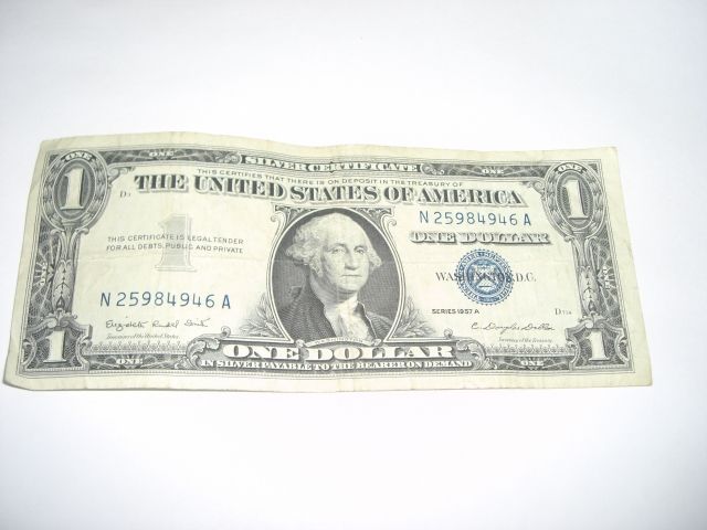 1957 SERIES A $1 SILVER CERTIFICATE *SERIAL #K25984946A*!! ***Coin, Currency & All Items Listed in this auction - Grades, Conditions and Values are not Safe Deposit Coins LLC Responsibilty. Grades, Condition and Values are determined by Consigner(s) & Buyers ONLY***