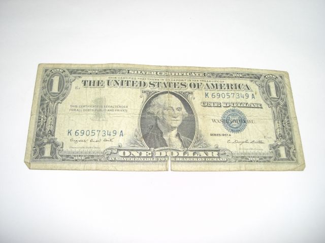 1957 SERIES A $1 SILVER CERTIFICATE *SERIAL #K69057349A*!! ***Coin, Currency & All Items Listed in this auction - Grades, Conditions and Values are not Safe Deposit Coins LLC Responsibilty. Grades, Condition and Values are determined by Consigner(s) & Buyers ONLY***