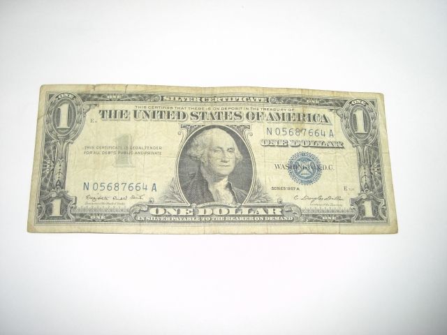 1957 SERIES A $1 SILVER CERTIFICATE *SERIAL #N05687664A*!! ***Coin, Currency & All Items Listed in this auction - Grades, Conditions and Values are not Safe Deposit Coins LLC Responsibilty. Grades, Condition and Values are determined by Consigner(s) & Buyers ONLY***
