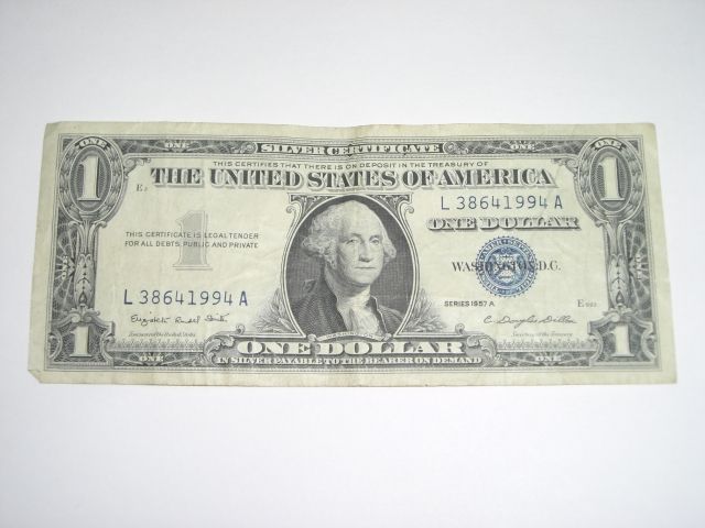 1957 SERIES A SILVER CERTIFICATE $1 SERIAL # L38641994A *NICE BILL PLEASE LOOK AT PICTURE TO DETERMINE GRADE*!! ***Coin, Currency & All Items Listed in this auction - Grades, Conditions and Values are not Safe Deposit Coins LLC Responsibilty. Grades, Condition and Values are determined by Consigner(s) & Buyers ONLY***