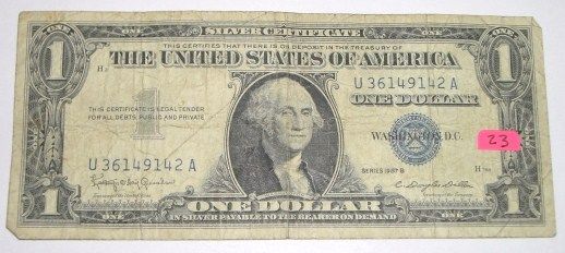 1957 SERIES B $1 SILVER CERTIFICATE BILL SERIAL #U36149142A *NICE EARLY U.S. BILL*!! ***Coin, Currency & All Items Listed in this auction - Grades, Conditions and Values are not Safe Deposit Coins LLC Responsibilty. Grades, Condition and Values are determined by Consigner(s) & Buyers ONLY***