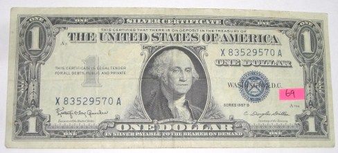 1957 SERIES B $1 SILVER CERTIFICATE BILL SERIAL # X83529570A *RARE EARLY U.S. BILL*!! BILL CAME OUT OF SAFE!! ***Coin, Currency & All Items Listed in this auction - Grades, Conditions and Values are not Safe Deposit Coins LLC Responsibilty. Grades, Condition and Values are determined by Consigner(s) & Buyers ONLY