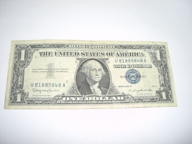 1957 SERIES B $1 SILVER CERTIFICATE EXTREMELY RARE 5-8'S *SERIAL #U81885848A*!! ***Coin, Currency & All Items Listed in this auction - Grades, Conditions and Values are not Safe Deposit Coins LLC Responsibilty. Grades, Condition and Values are determined by Consigner(s) & Buyers ONLY***